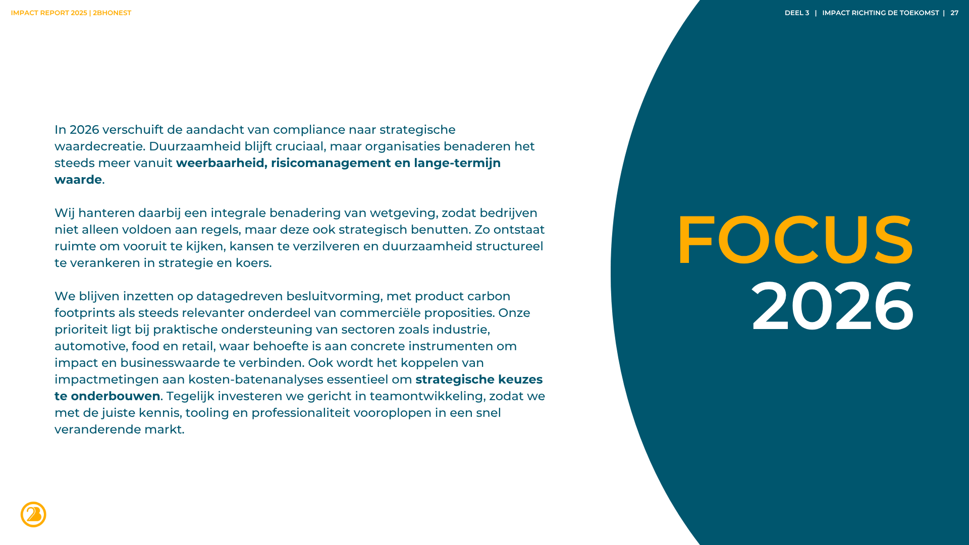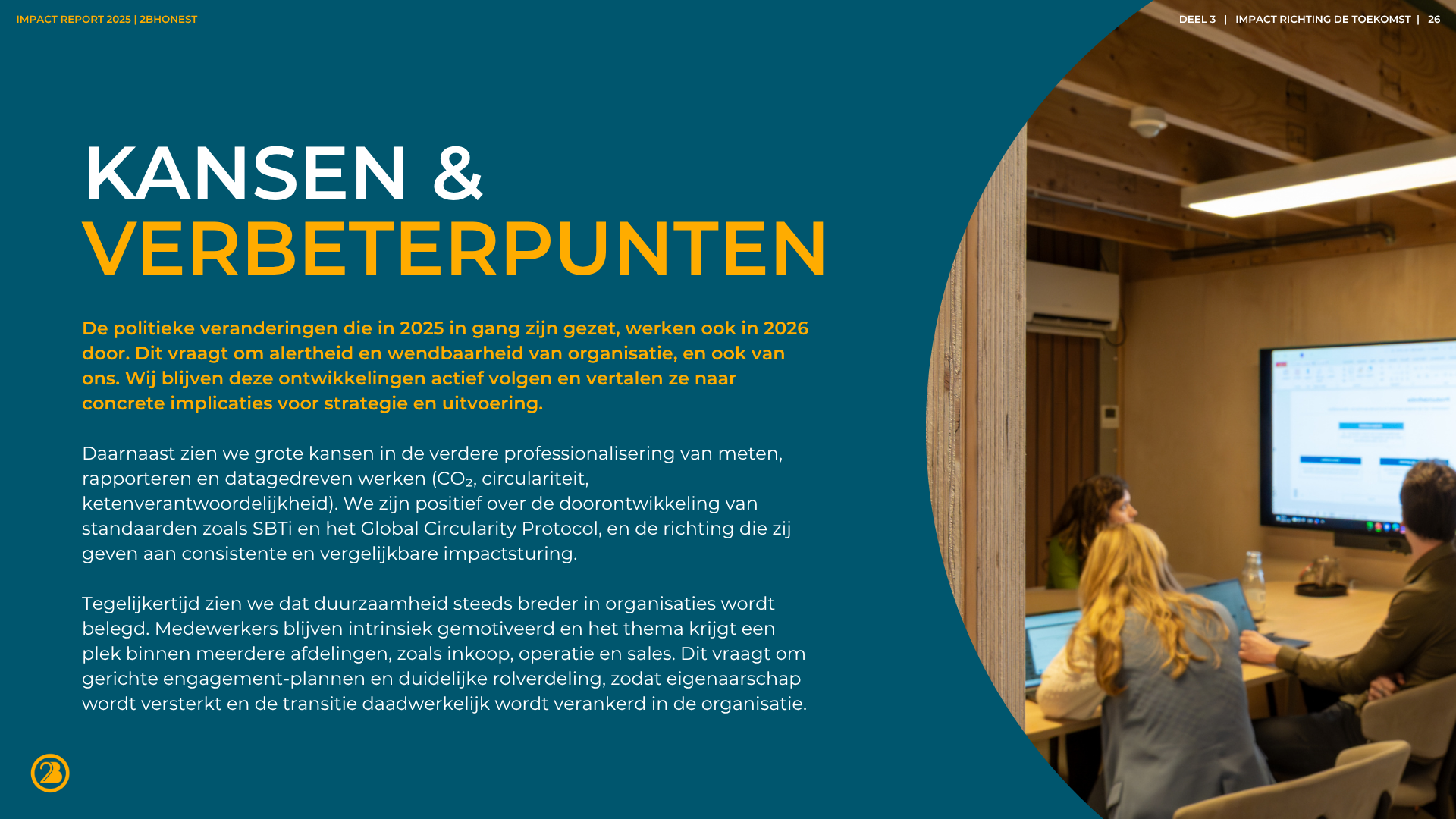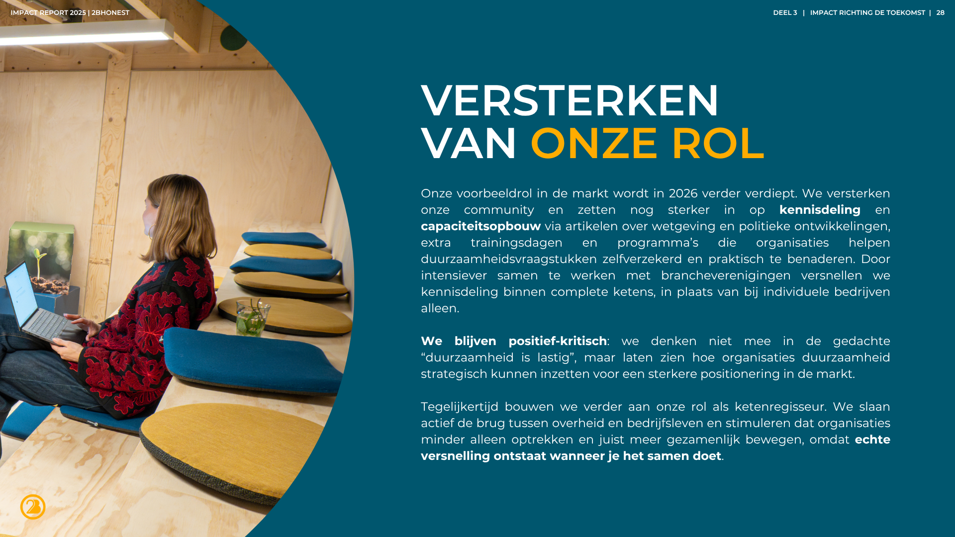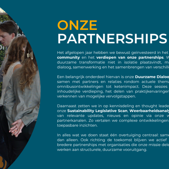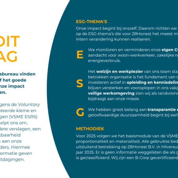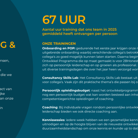 Als bedrijf of organisatie kun je een BCorp-certificering verdienen als bewijs van maatschappelijk en duurzaam ondernemen. Wij helpen bij het behalen van deze certificering. Onze getrainde B Leaders Lydia en Nikki, ondersteunen in het hele certificeringsproces. Ze helpen bij het identificeren van kansen voor verbetering en het vastleggen ervan in de bedrijfsvoering. Of je nu het duurzaam inkoopbeleid wilt versterken, de CO₂-footprint wilt berekenen of duurzaamheid dieper in de strategie wilt verweven – onze B Leader staat klaar.