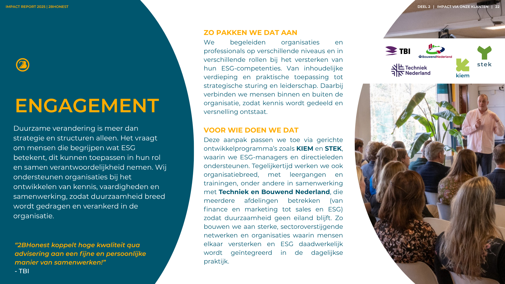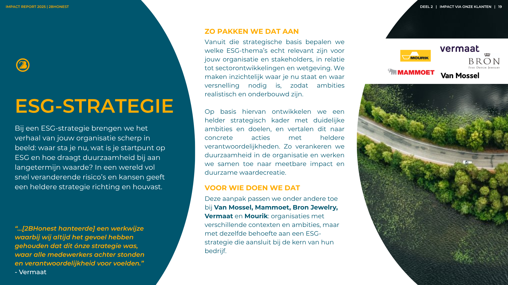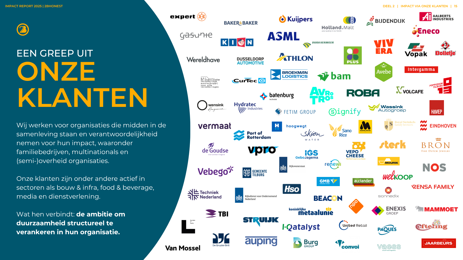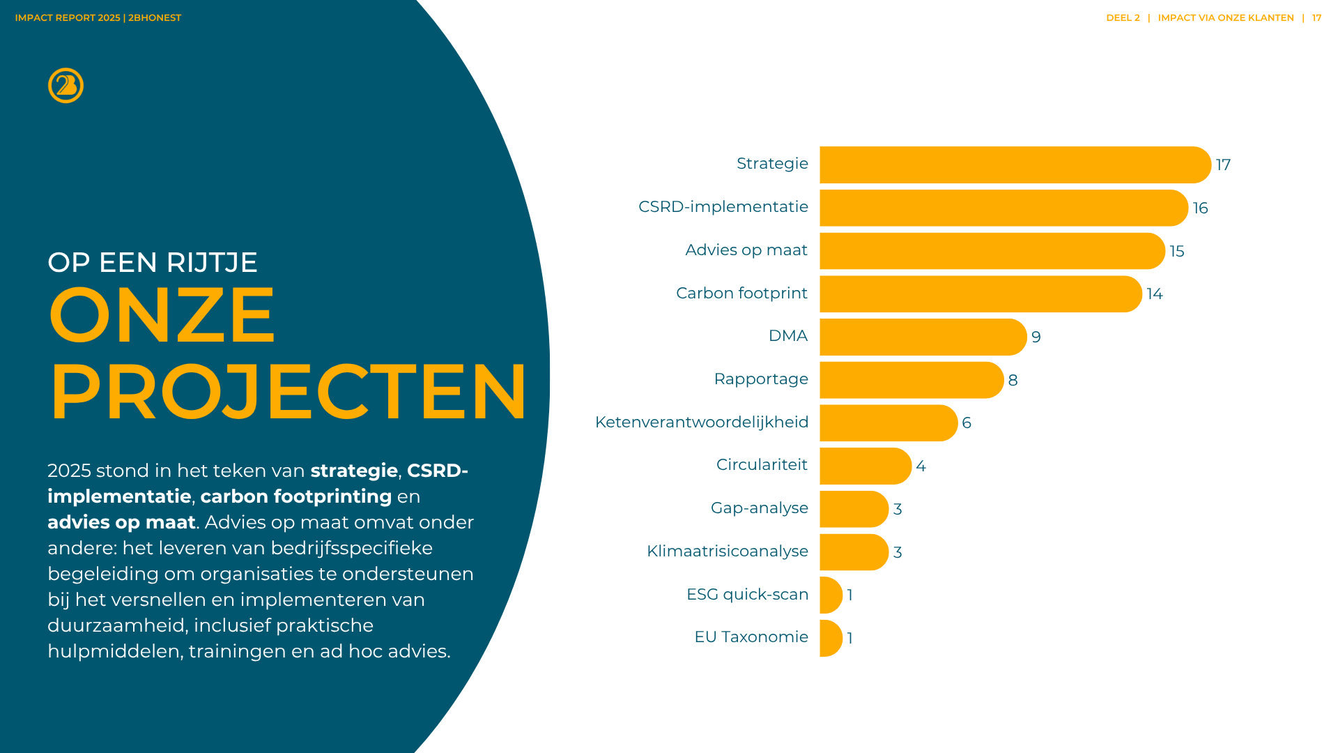 Verduurzaming is niet zomaar ‘een project’ erbij. Het is een verandering in de kern van een bedrijf. Natuurlijk kunnen wij heel goed op strategisch niveau ‘leveren’ en helpen we bij het voldoen aan wet- en regelgeving. Maar daar begint het pas. We zien het als een startschot. De hele bedrijfsvoering gaat onder de loep. We werken samen aan het implementeren van ambities. We zorgen dat ze praktisch haalbaar zijn (en leuk!). We wakkeren aan en creëren begrip. En we werken toe naar concrete resultaten.